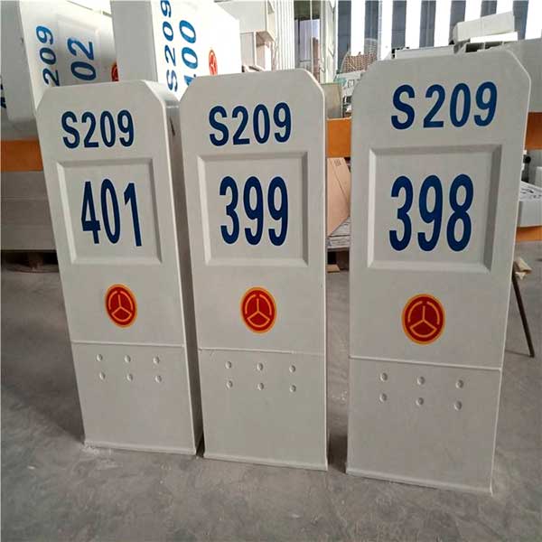 玻璃鋼里程碑是一種交通安全產(chǎn)品,道路交通標志牌的一種,材料采用玻璃鋼,因玻璃鋼材料無回收價值,也叫做防盜標志牌。道路交通標志牌是用文字與圖案傳遞警告禁令指示信息給司機和行人,用以管理道路交通的安全設施。它給道路使用者以確切的道路交通信息,使道路安全暢通,事關司機和行人的生命財產(chǎn)安全,是一種不可缺少的交通安全附屬設施。其特點如下: