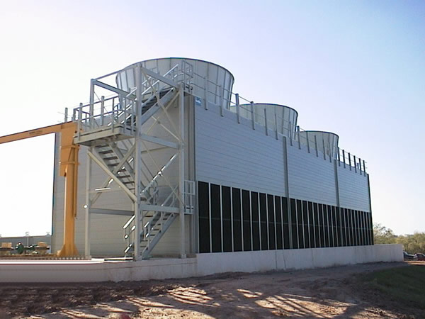 開式玻璃鋼冷卻塔是利用水和空氣的接觸,通過蒸發(fā)作用來散去工業(yè)上或制冷空調中產生的廢熱的一種設備。